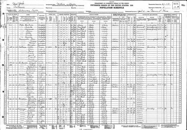 Valeri Family 1930 Federal Census New York, Lines 3-8