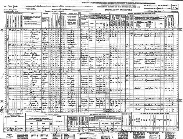 Valeri Family 1940 Federal Census New York, Lines 44-48