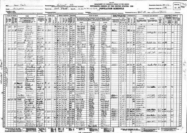Pope Family 1920 Federal Census New York, Lines 84-95