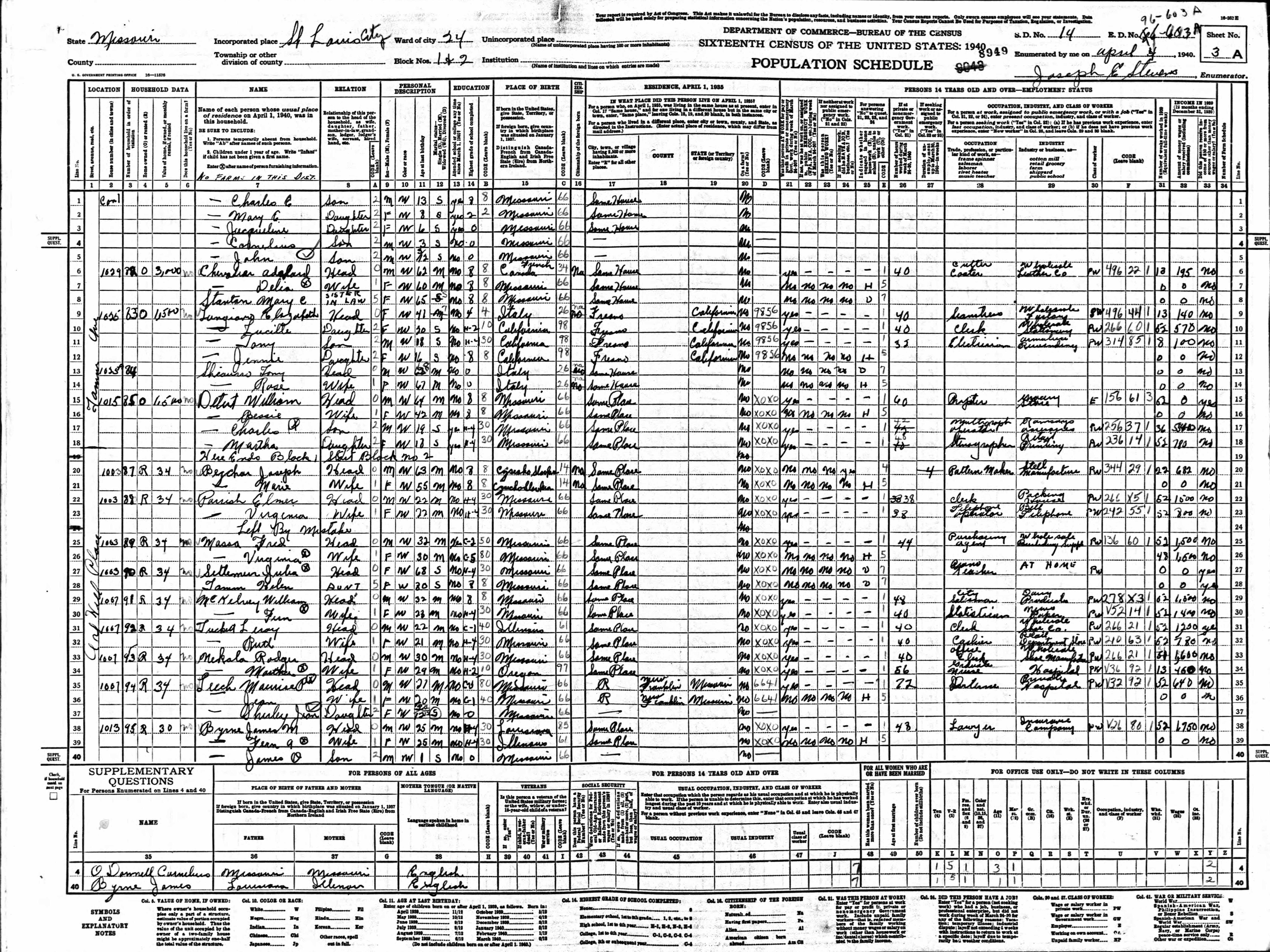 Ciaurro Family 1940 Federal Census Missouri, Lines 66-68