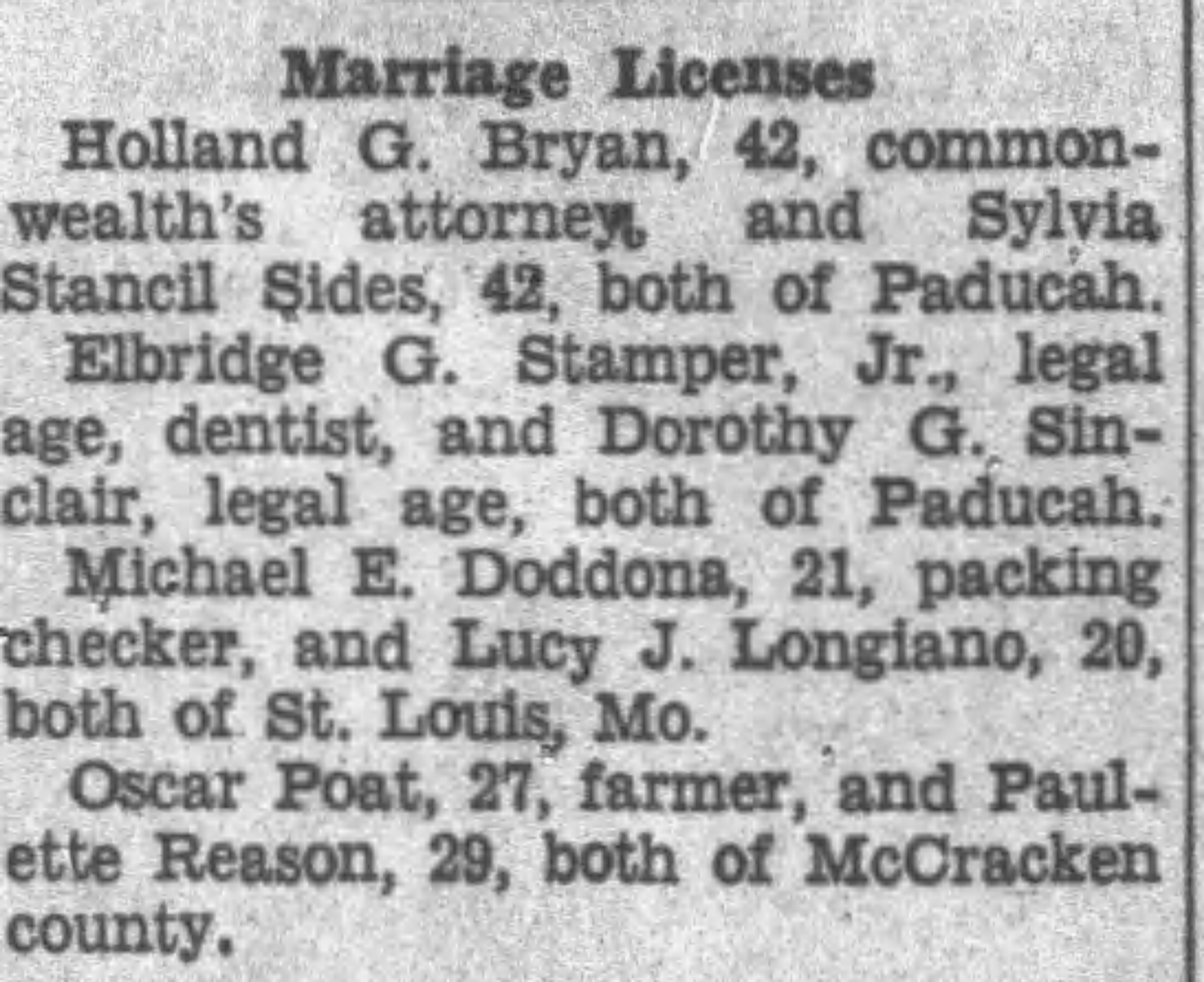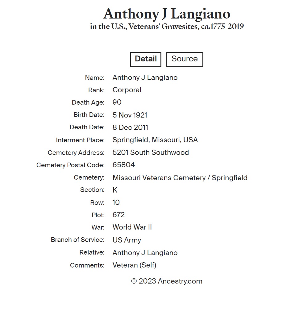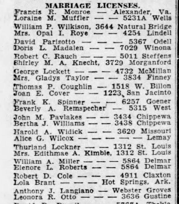 Lucy Rose Langiano were married in 1940 in St. Louis, Missouri, USA. He and