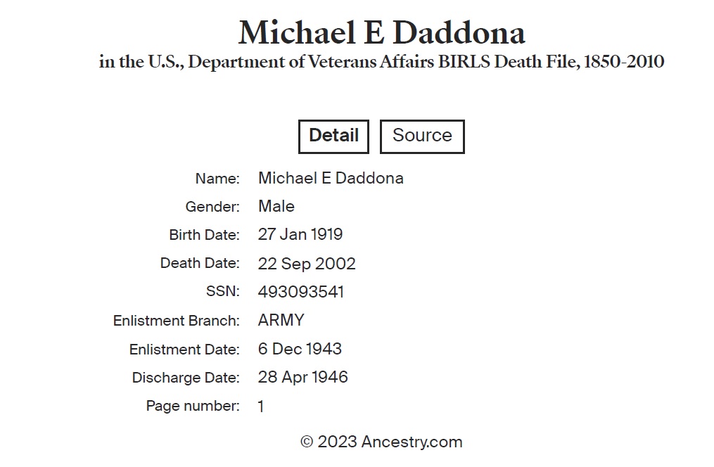 Michael Edward D'Addona was born on January 27, 1919 in St. Louis, Missouri, USA. He and