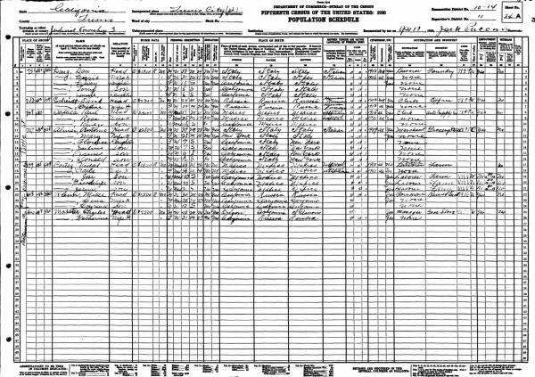 Langiano Family 1930 Federal Census California, Lines 1-5