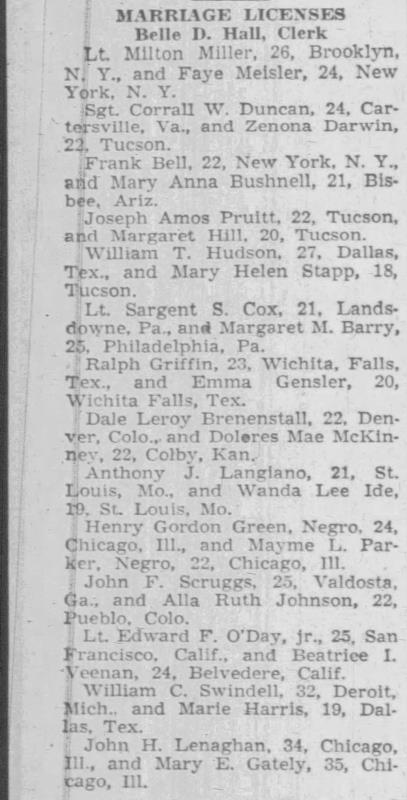 Wanda Lee Ide were married on January 9, 1943 in Tuscon, Pima, Arizona, USA. He and