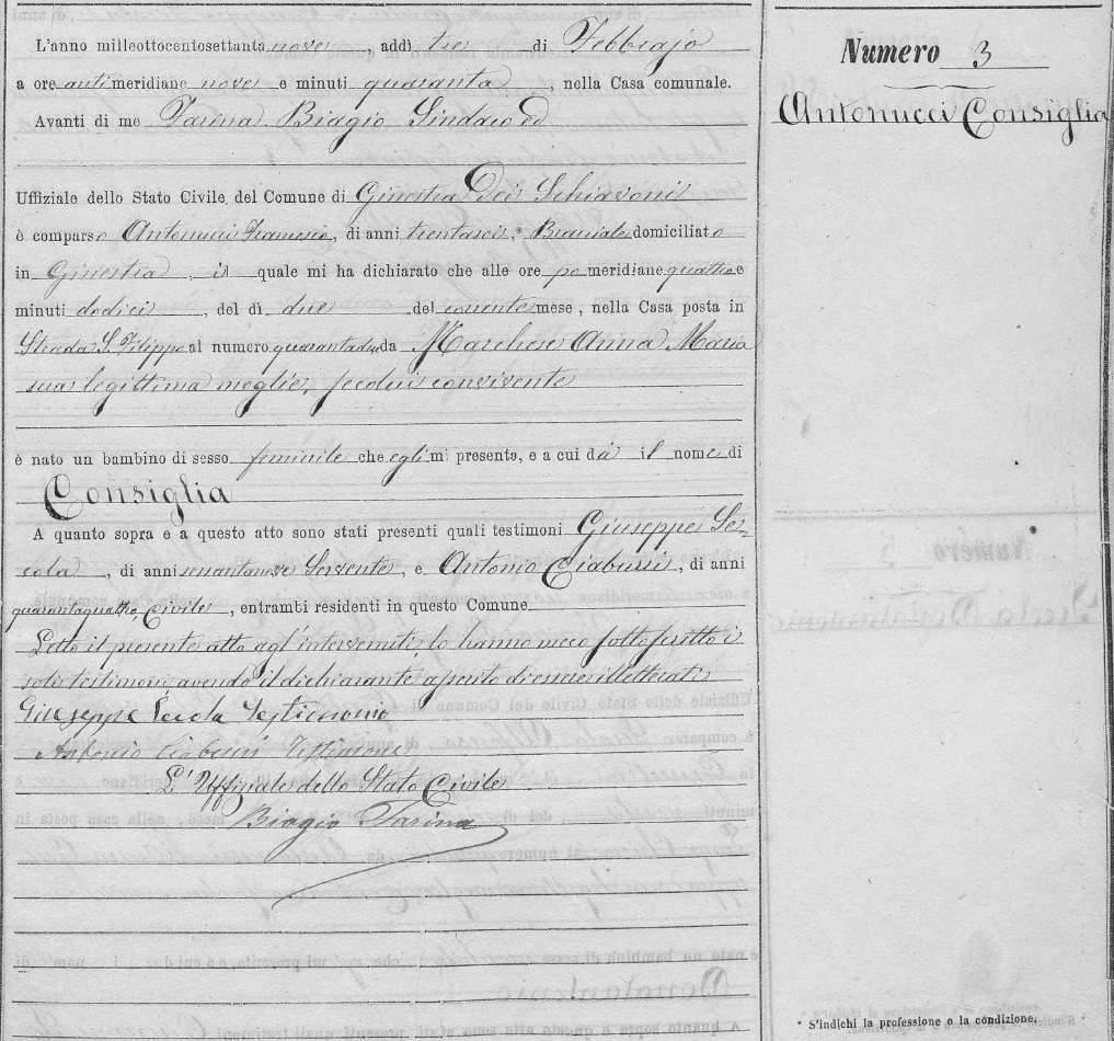 Consiglia Antonucci was born on February 2, 1879 in Ginestra degli Schiavoni, Benevento, Campania, Italy. She died.