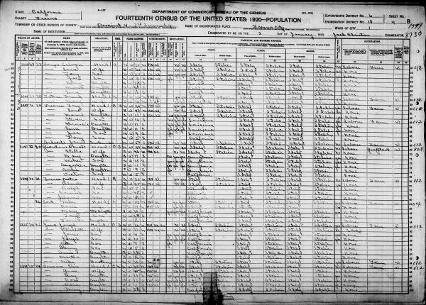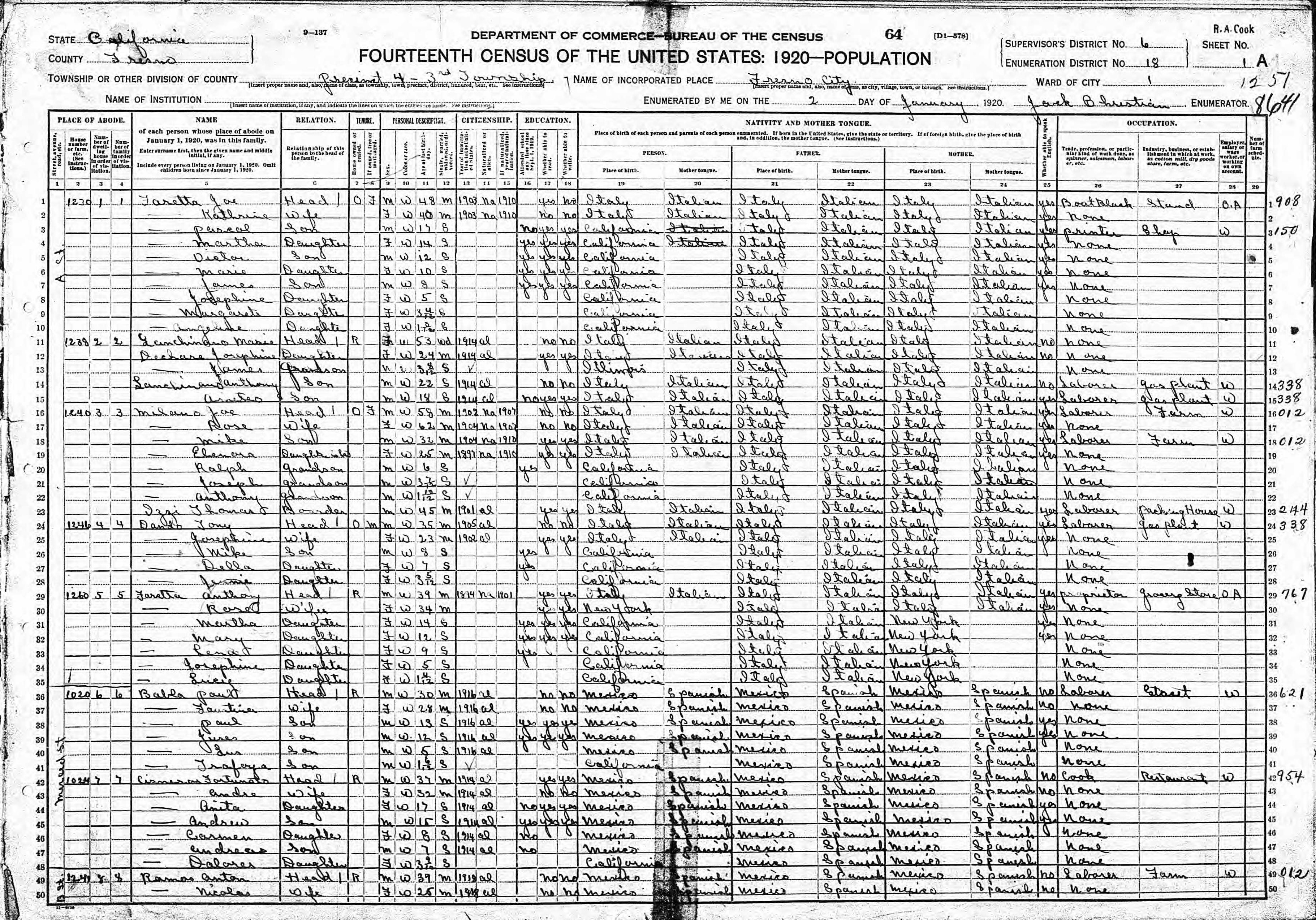 Langiano Family 1920 Federal Census California, Lines 11-15