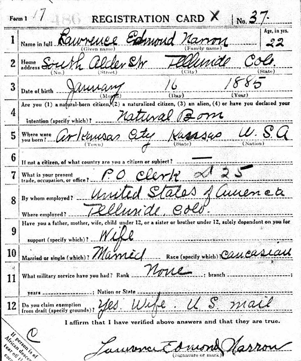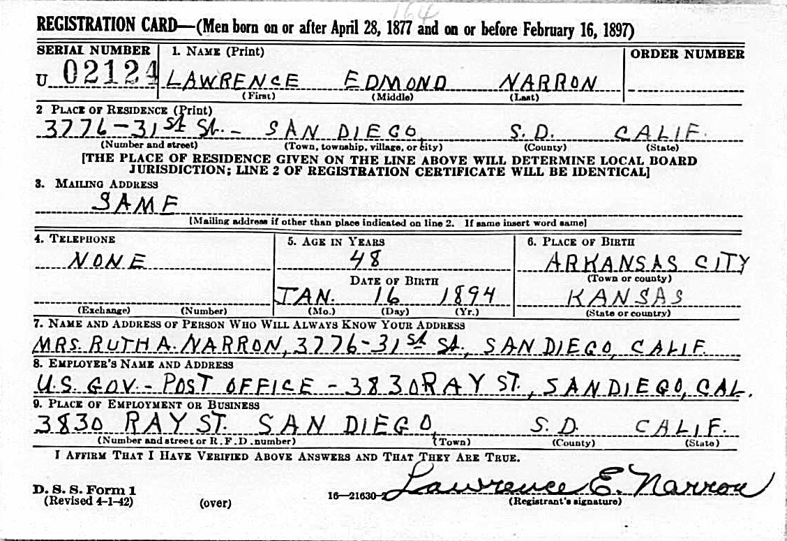 Lawrence Edmund Narron was born on January 16, 1894 in Kansas, USA. He and