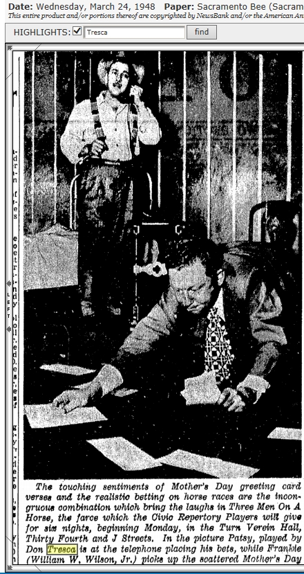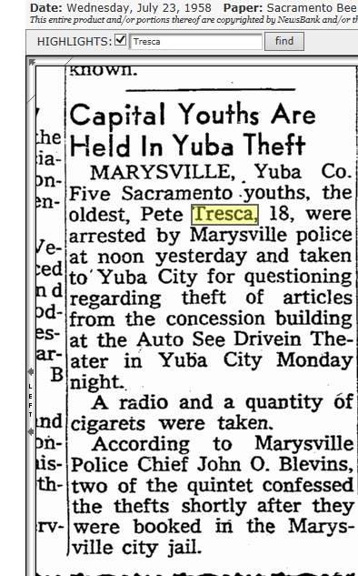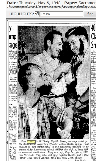Raphael "Ralph" Tresca were married on July 12, 1946 in Carson City, Nevada, USA. She died on July 6, 2006, at age 79, in Sacramento, Sacramento, California, USA.