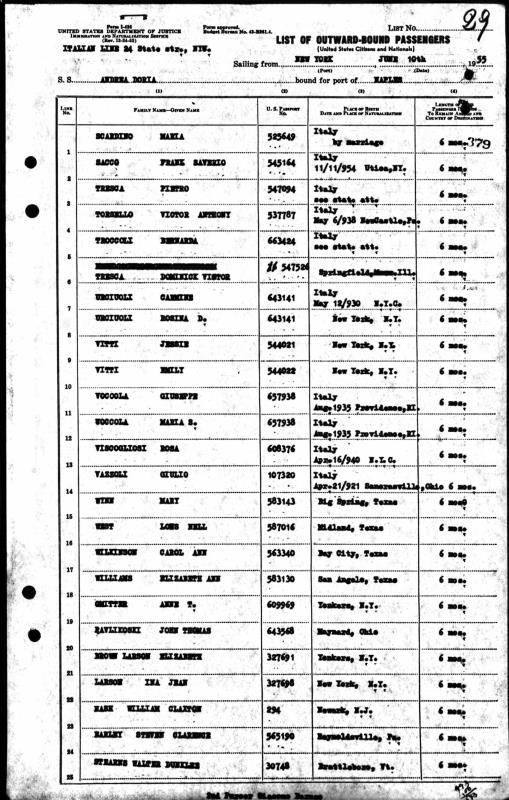 Pietro and Dominic Tresca 1955 Departure Ship Manifest, Lines3 and 6