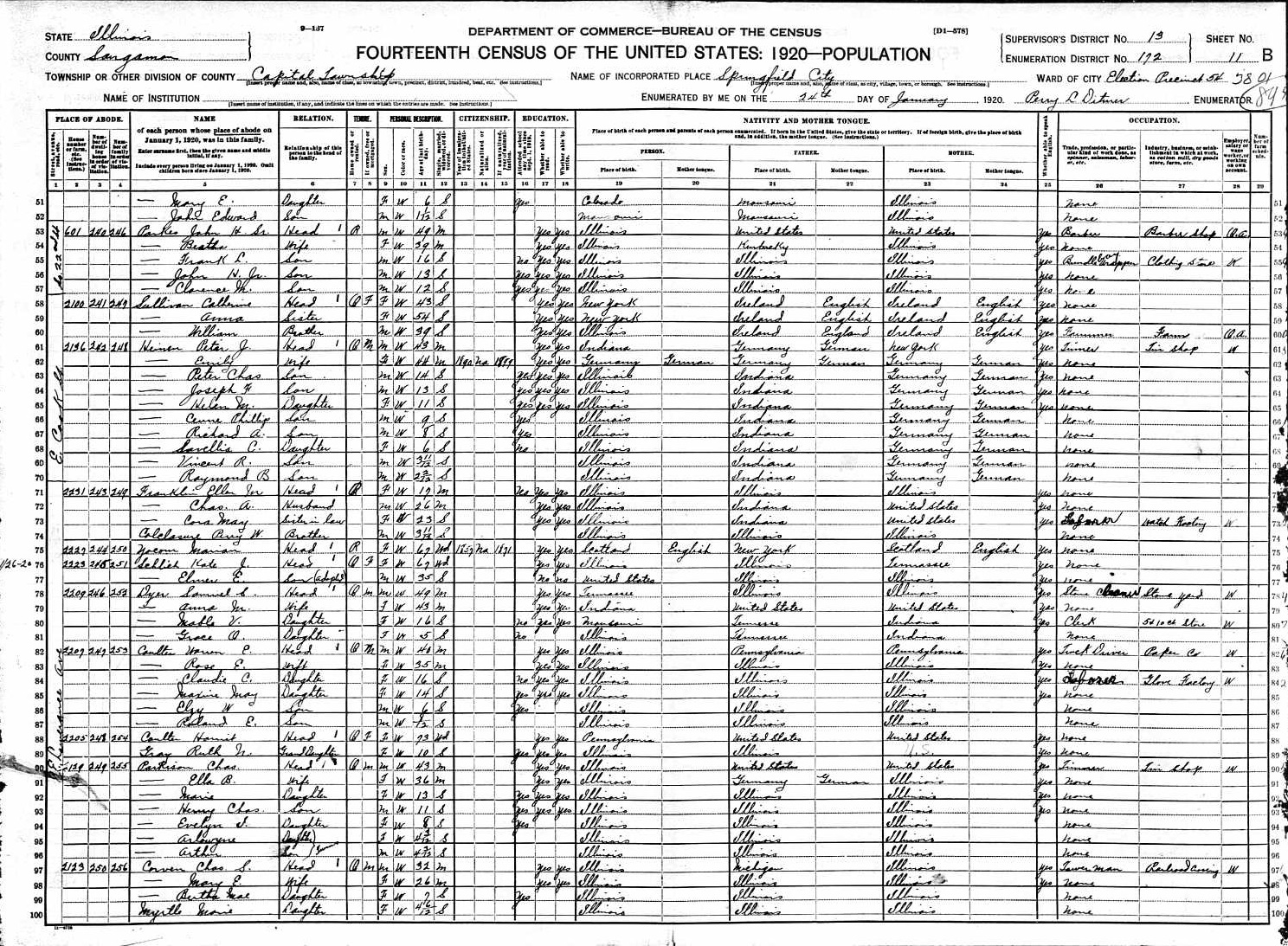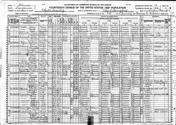 Heinen Family 1920 Federal Census Illinois, Lines 61-70