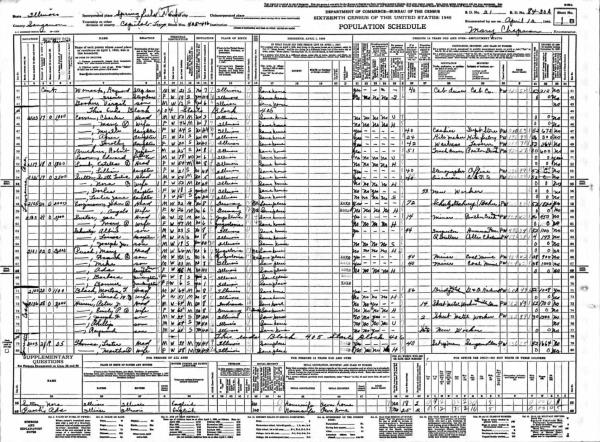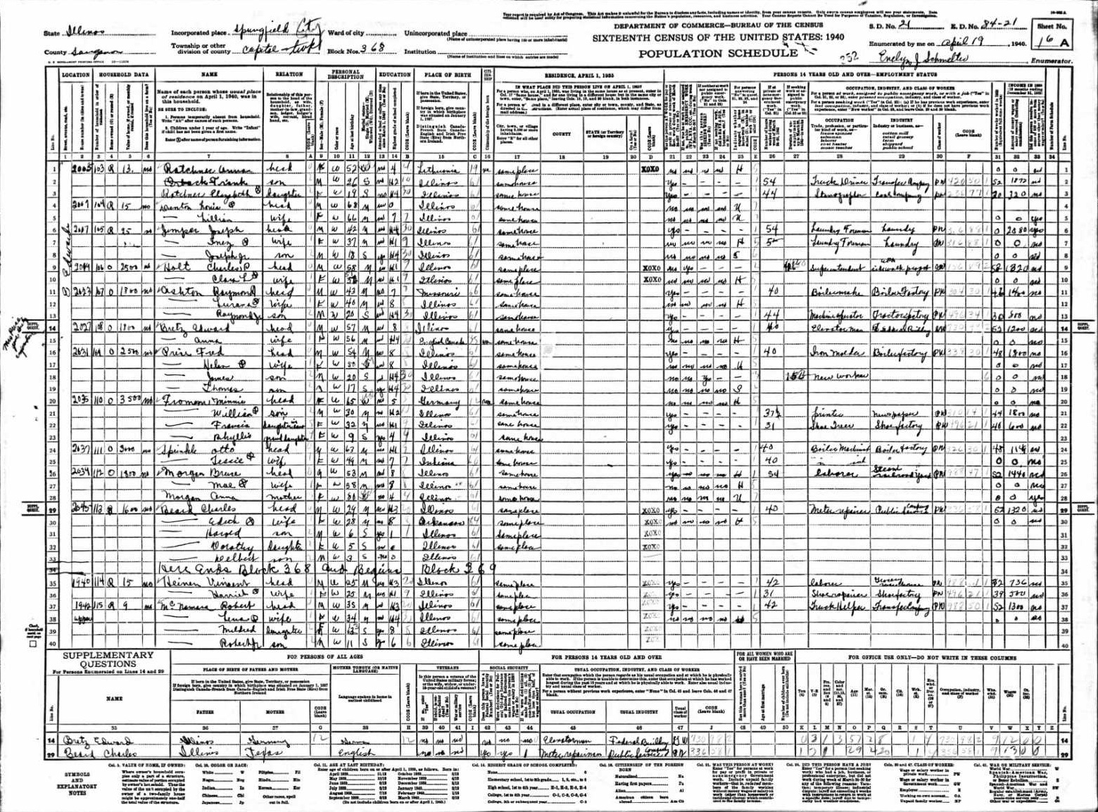 Schuster Family 1940 Federal Census Illinois, Lines 60-64