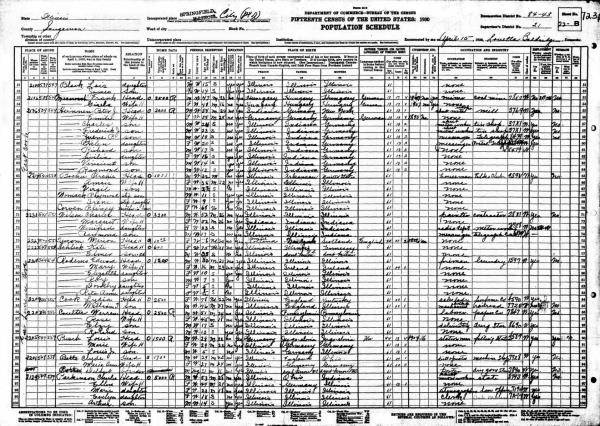 Schuster Family 1930 Federal Census Illinois, Lines 16-20