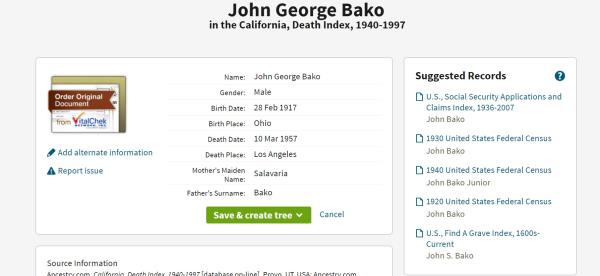 John George Bako was born on February 28, 1917 in Ohio, USA. He and