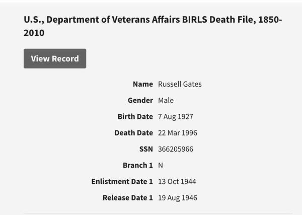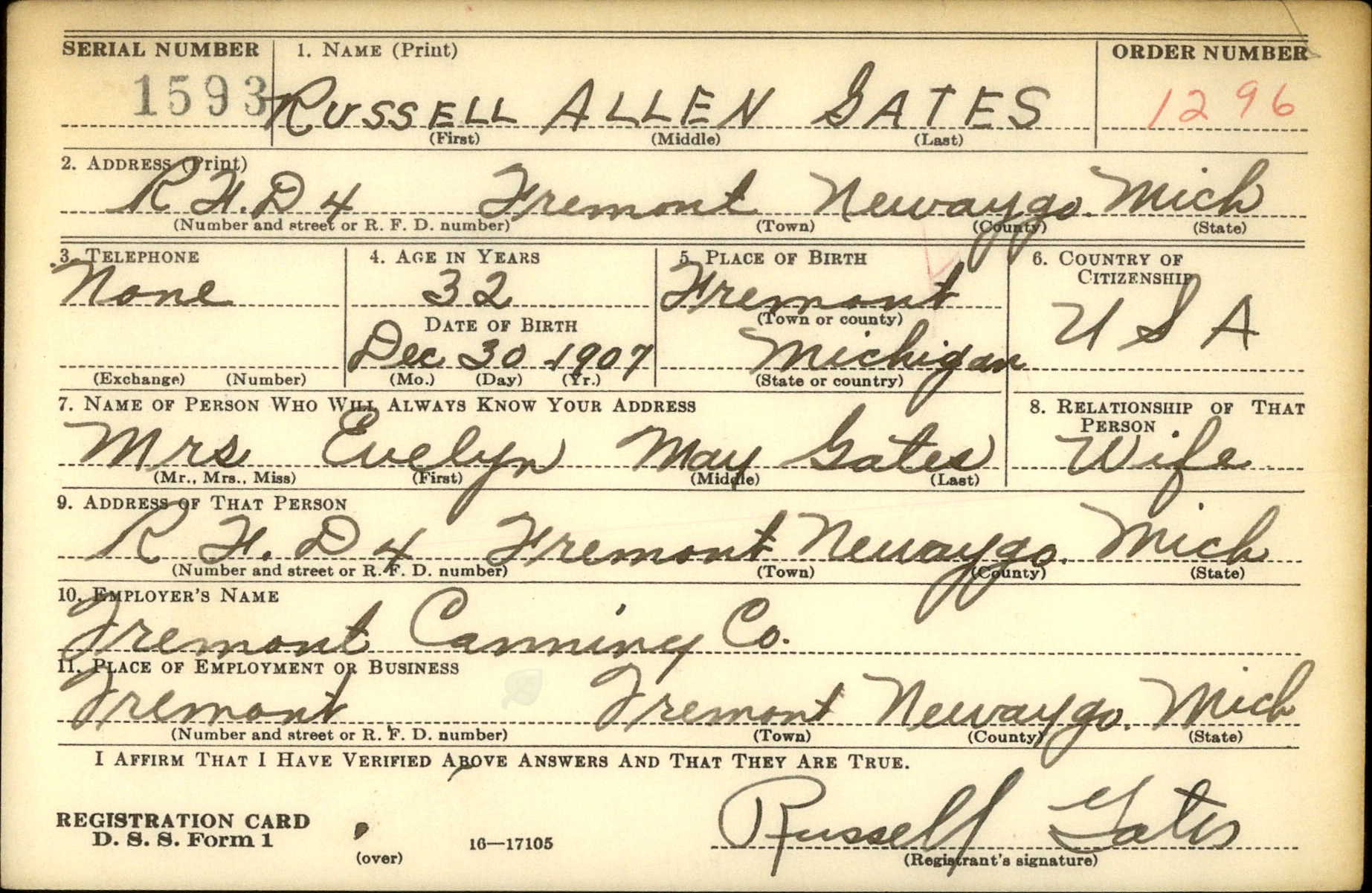 Family: Russell Allen Gates, Sr., Born: December 30, 1907, Died: November 22, 1988