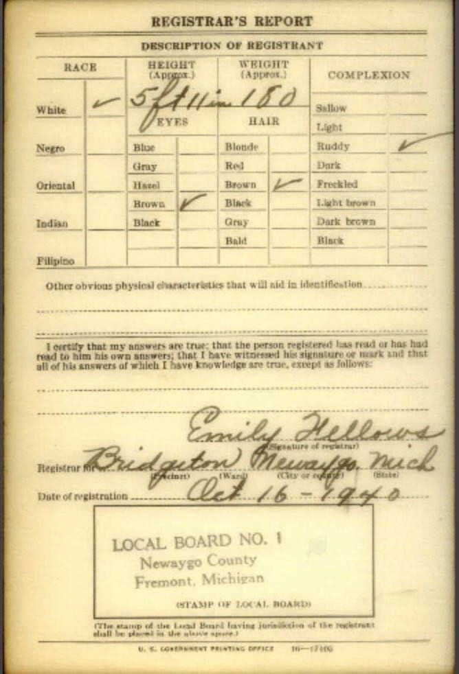 Elinor Connor were married on October 12, 1946 in Genesee, Genesee, Michigan, USA. He died on March 22, 1996, at age 68, in Muskegon, Muskegon, Michigan, USA.