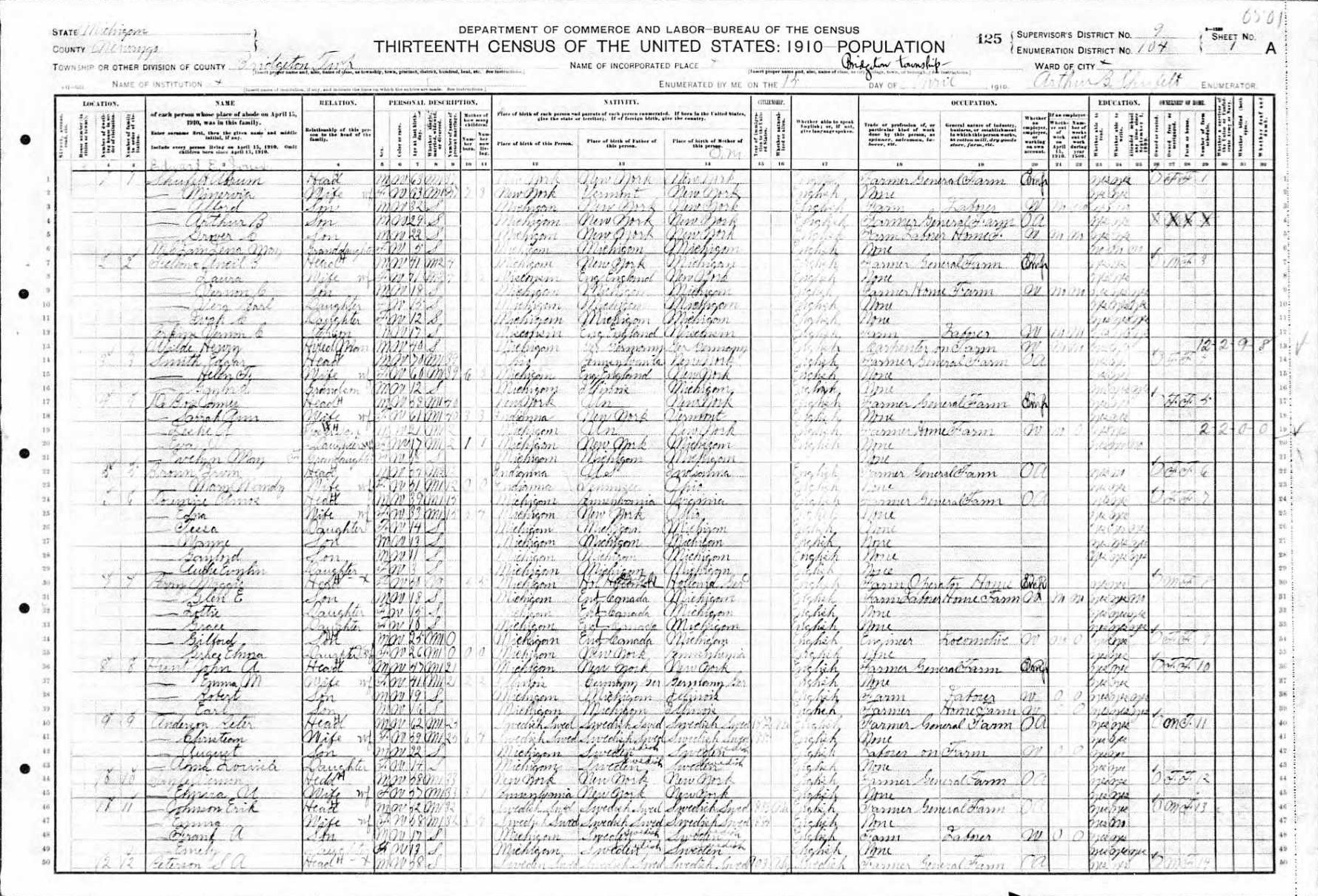 DeBois Family 1910 Federal Census Michigan, Lines 17-21