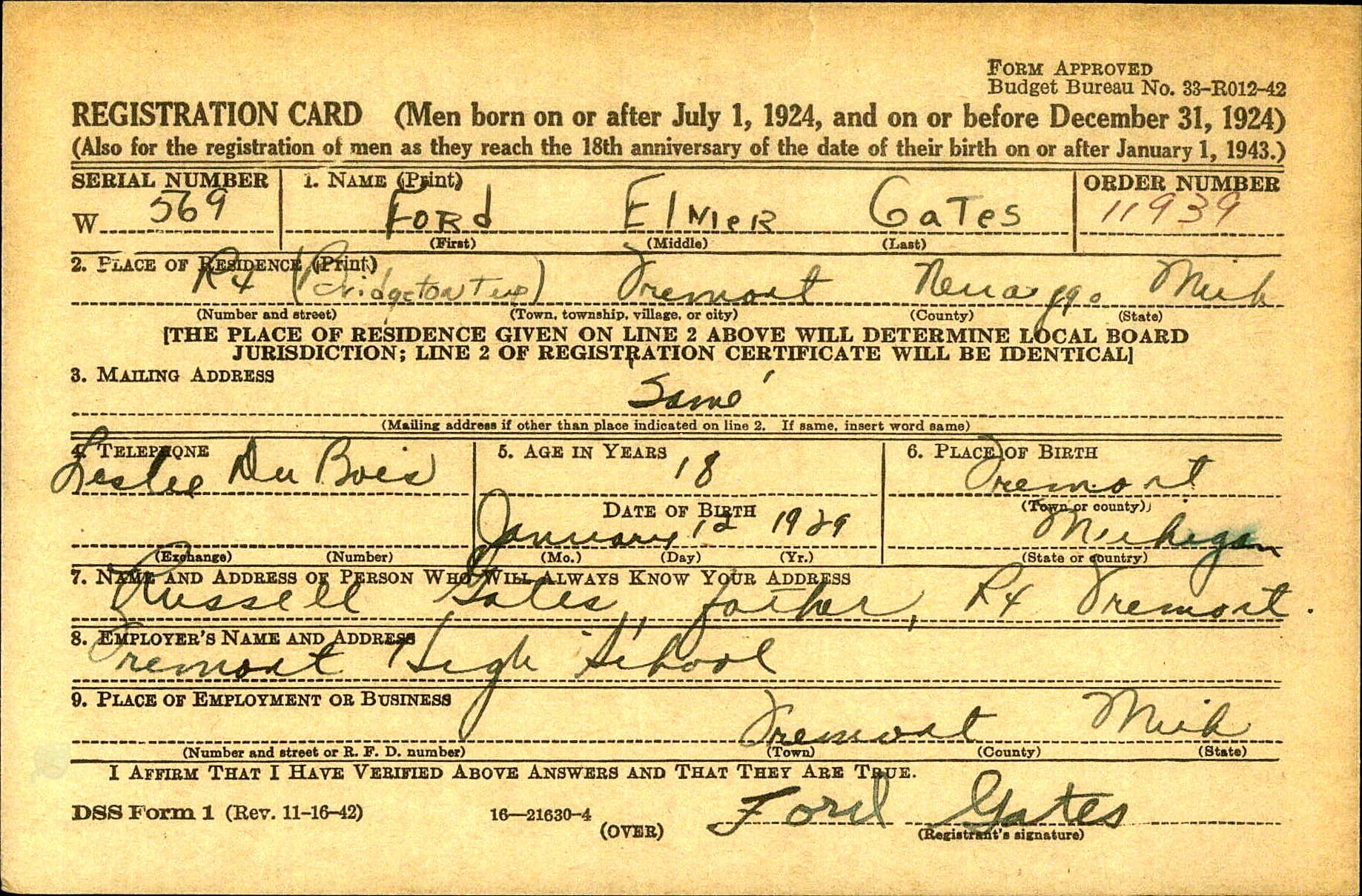 Ford Elmer Gates was born on January 12, 1929 in Bridgeton, Newaygo, Michigan, USA. He and
