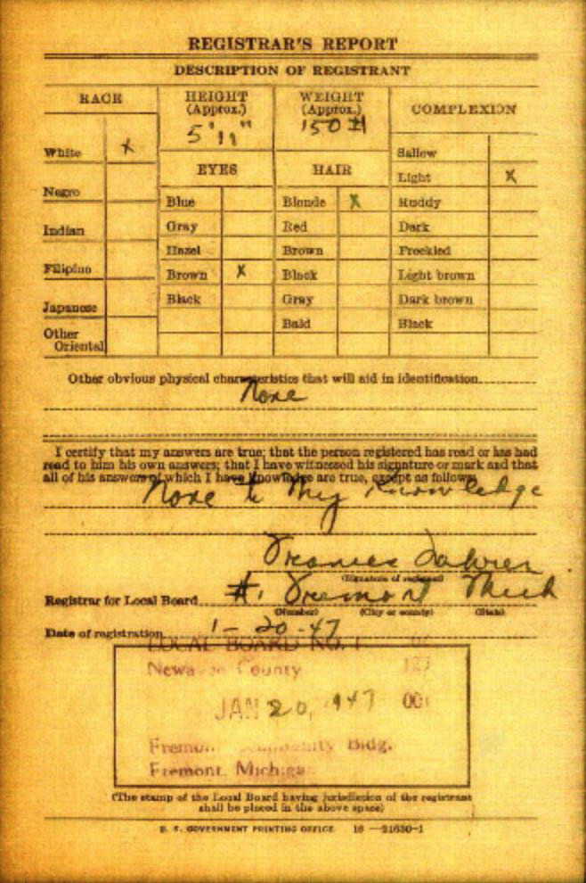 Delores Ann Archer were married on December 29, 1946 in Grand Rapids, Kent, Michigan, USA. He and