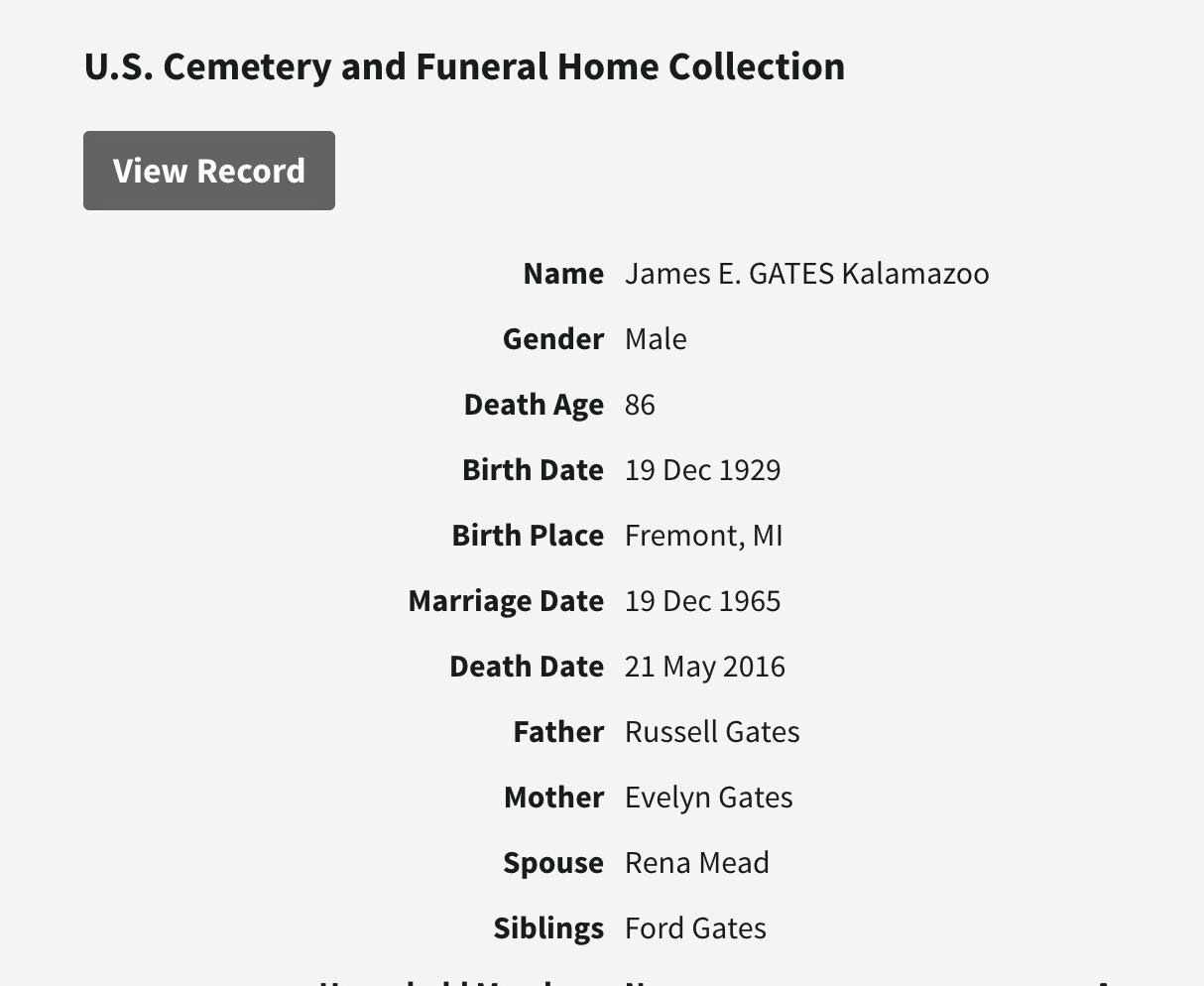 | Son | James Eugene Gates Born: December 19, 1929, Died: May 21, 2016 |