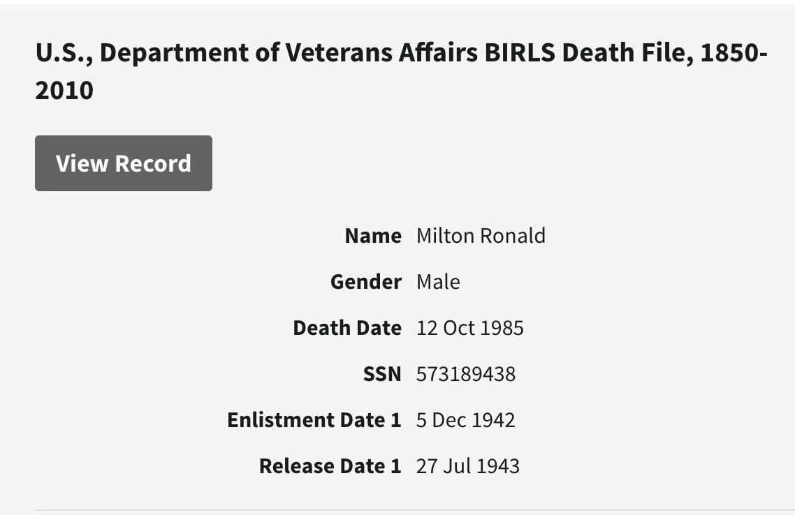 Milton James Ronald was born on September 1, 1915 in Cle Elum, Kittitas, Washington, USA. He and