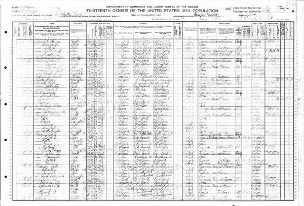 DeBois Family 1910 Federal Census Michigan, Lines 17-21