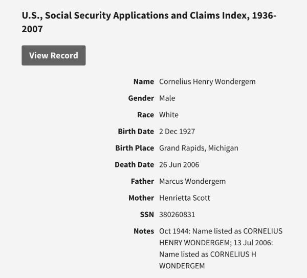 Cornelius Henry "Neil" Wondergem was born on December 2, 1927 in Grand Rapids, Kent, Michigan, USA. He and
