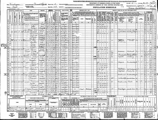Shriver Family 1940 Federal Census Michigan, Lines 27-32
