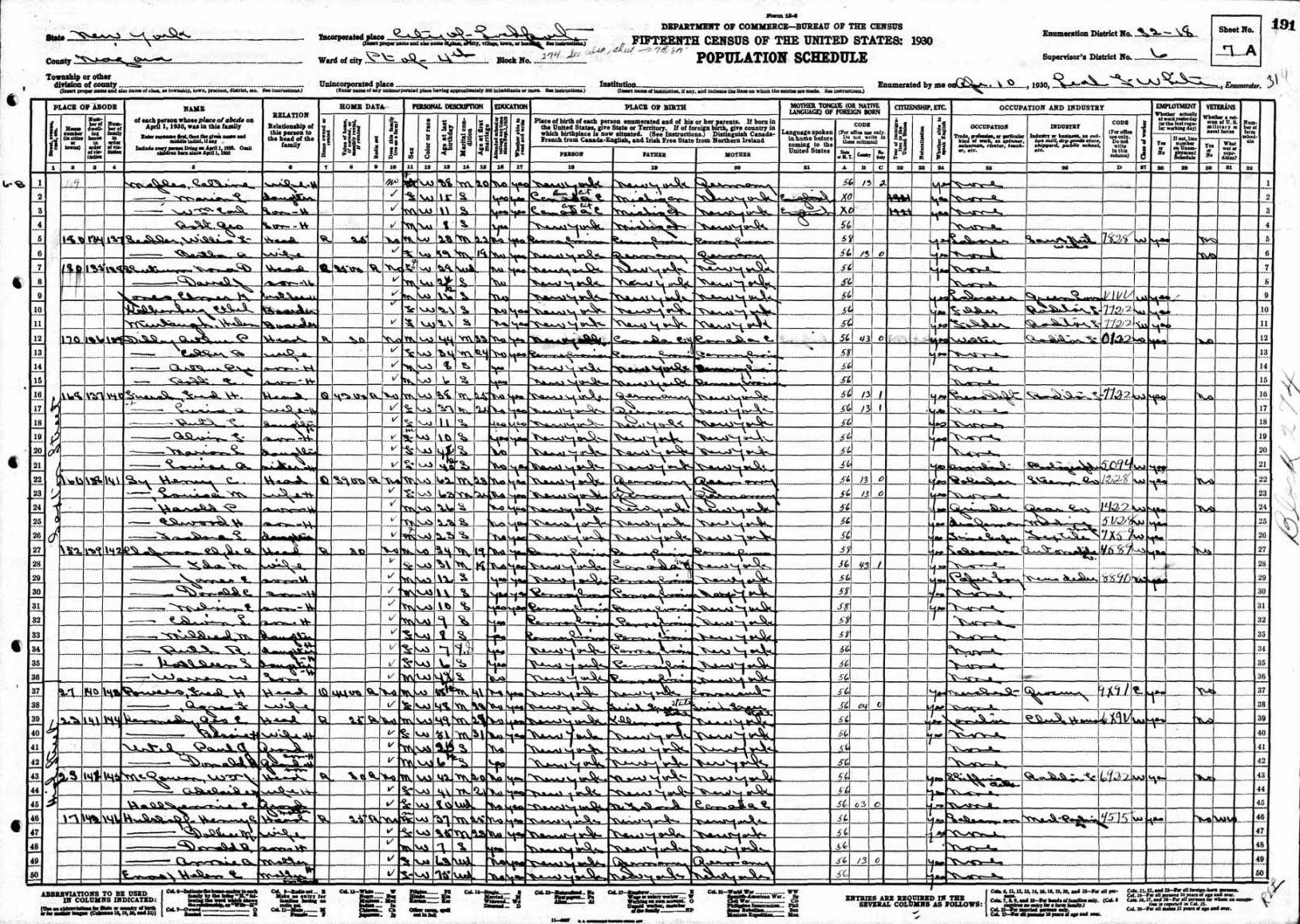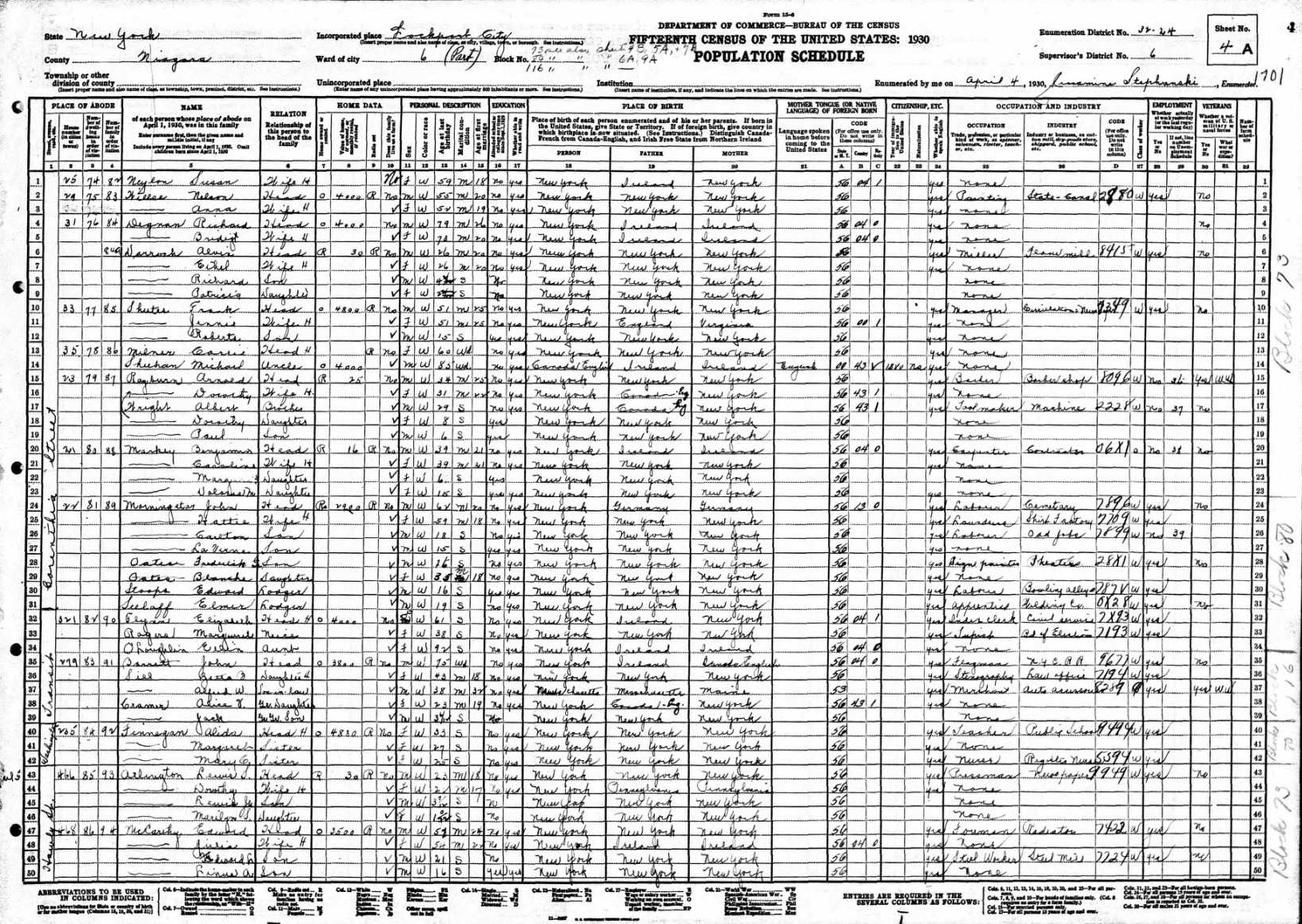 Arlington Family 1930 Federal Census New York, Lines 43-46