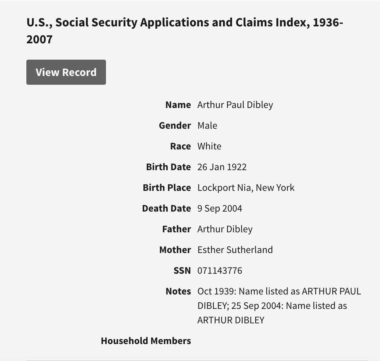 Arthur Paul Dibley, Jr., was born on January 26, 1922 in Lockport, Niagara, New York, USA. He and