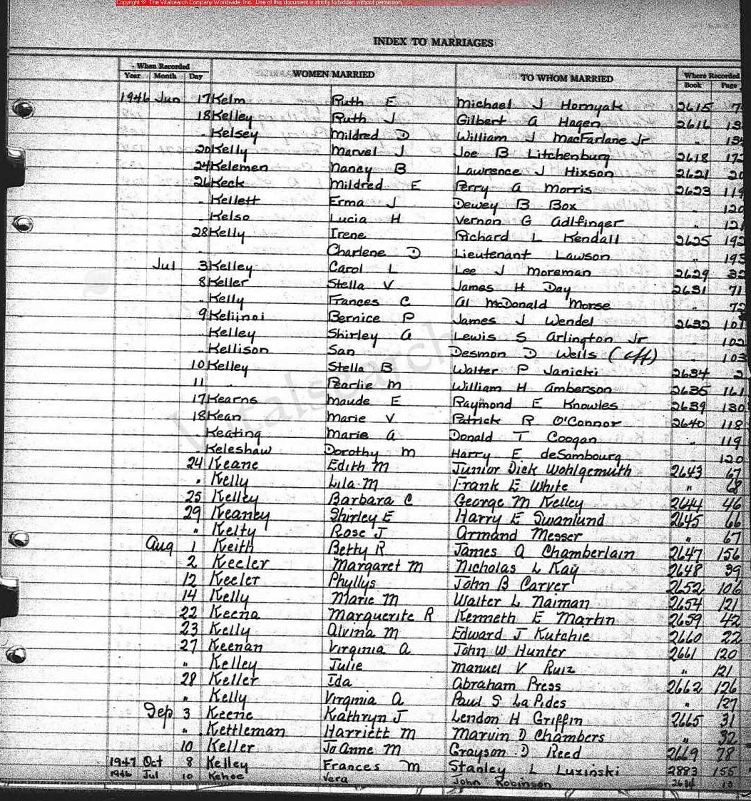 Shirley Ann Kelley were married on July 9, 1946 in Los Angeles, California, USA. He and