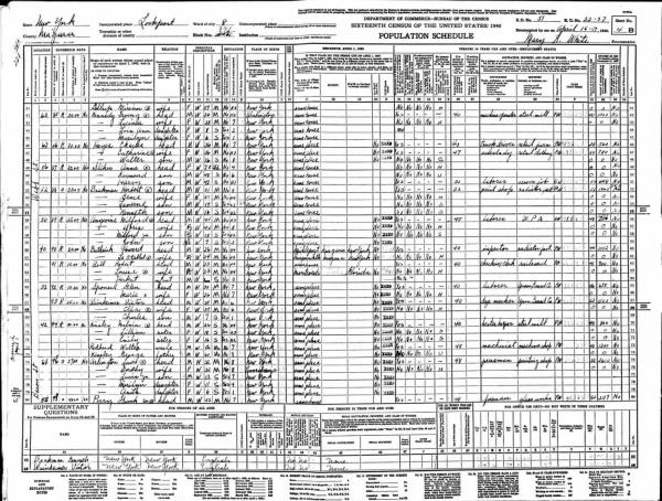 Arlington Family 1940 Federal Census New York, Lines 75-79