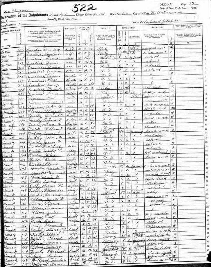 Anastasi Family 1925 State Census New York, Lines 1-11