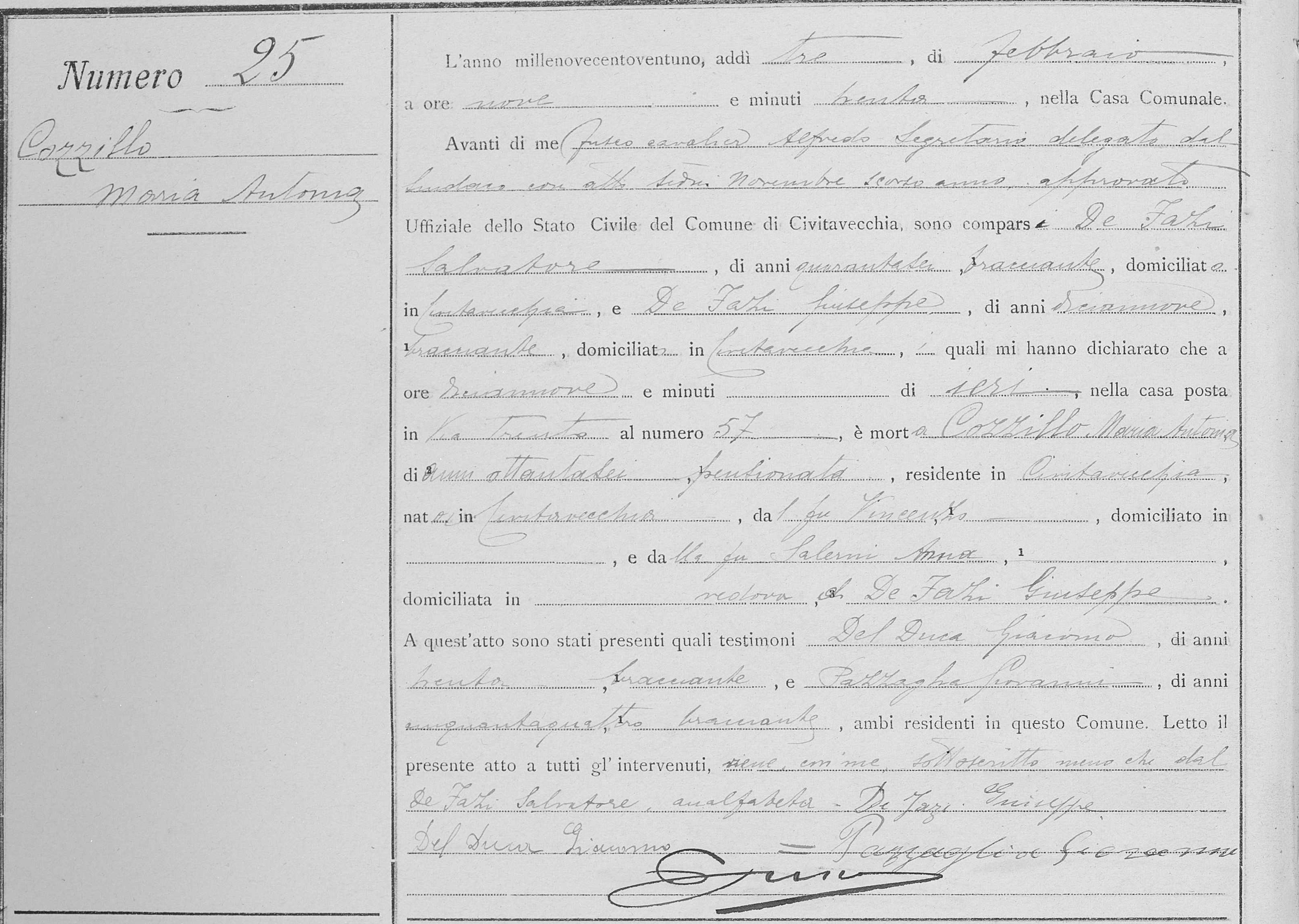 Maria Antonia Cozzillo was born in 1835 in Civitavecchia, Roma, Lazio, Italy. She and