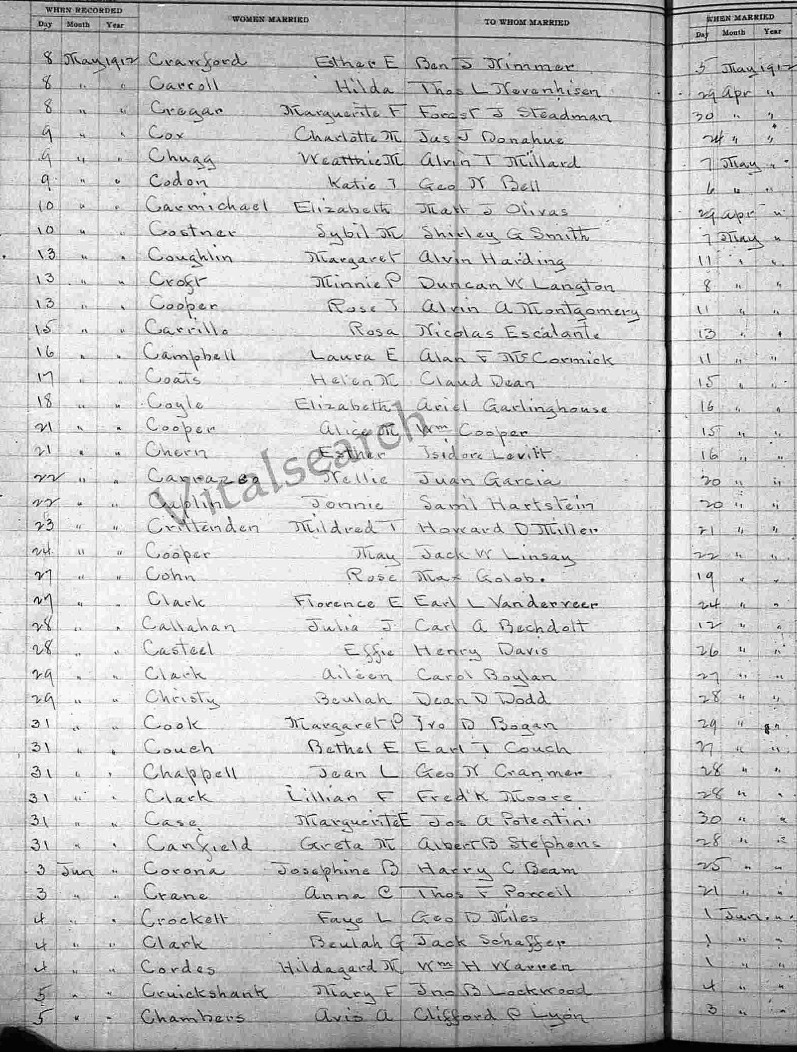 1912 Marriage Record, Line 18