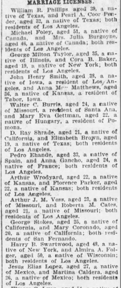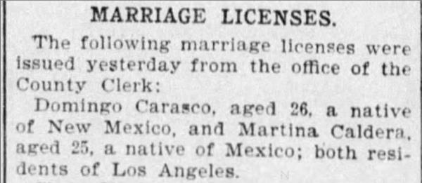 Domingo Carasco were married on March 18, 1900 in Los Angeles, California, USA. She and