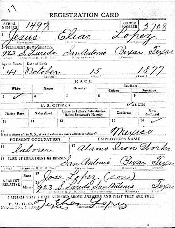 Jesus Elias Lopez was born on October 15, 1877 in Mexico. He and
