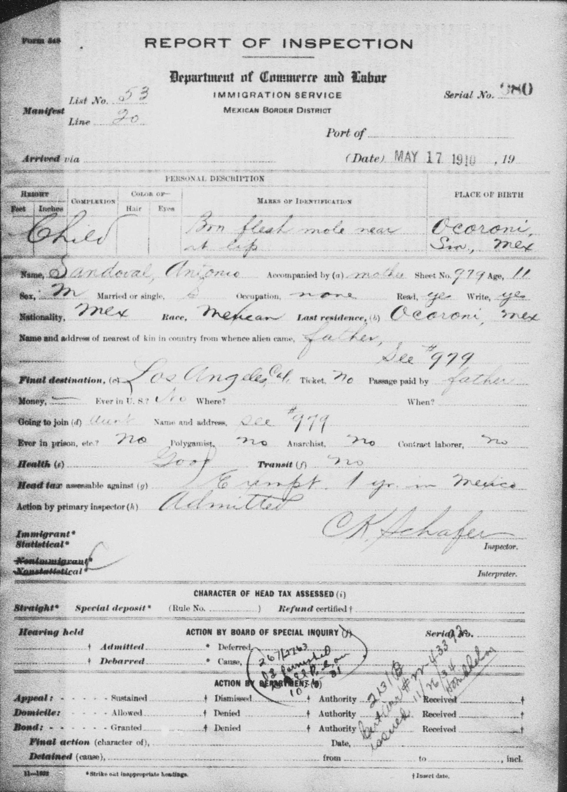 1910 Immigration Inspection Report
