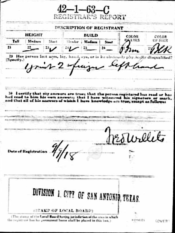 1918 World War I Registration Page 1