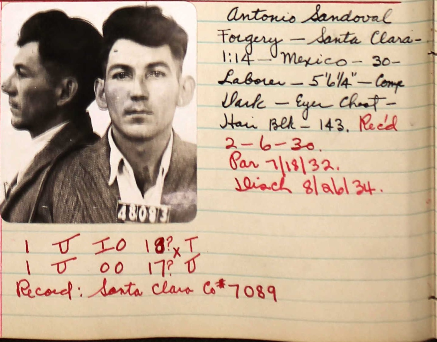 1934 San Quentin Prison Record Page 1