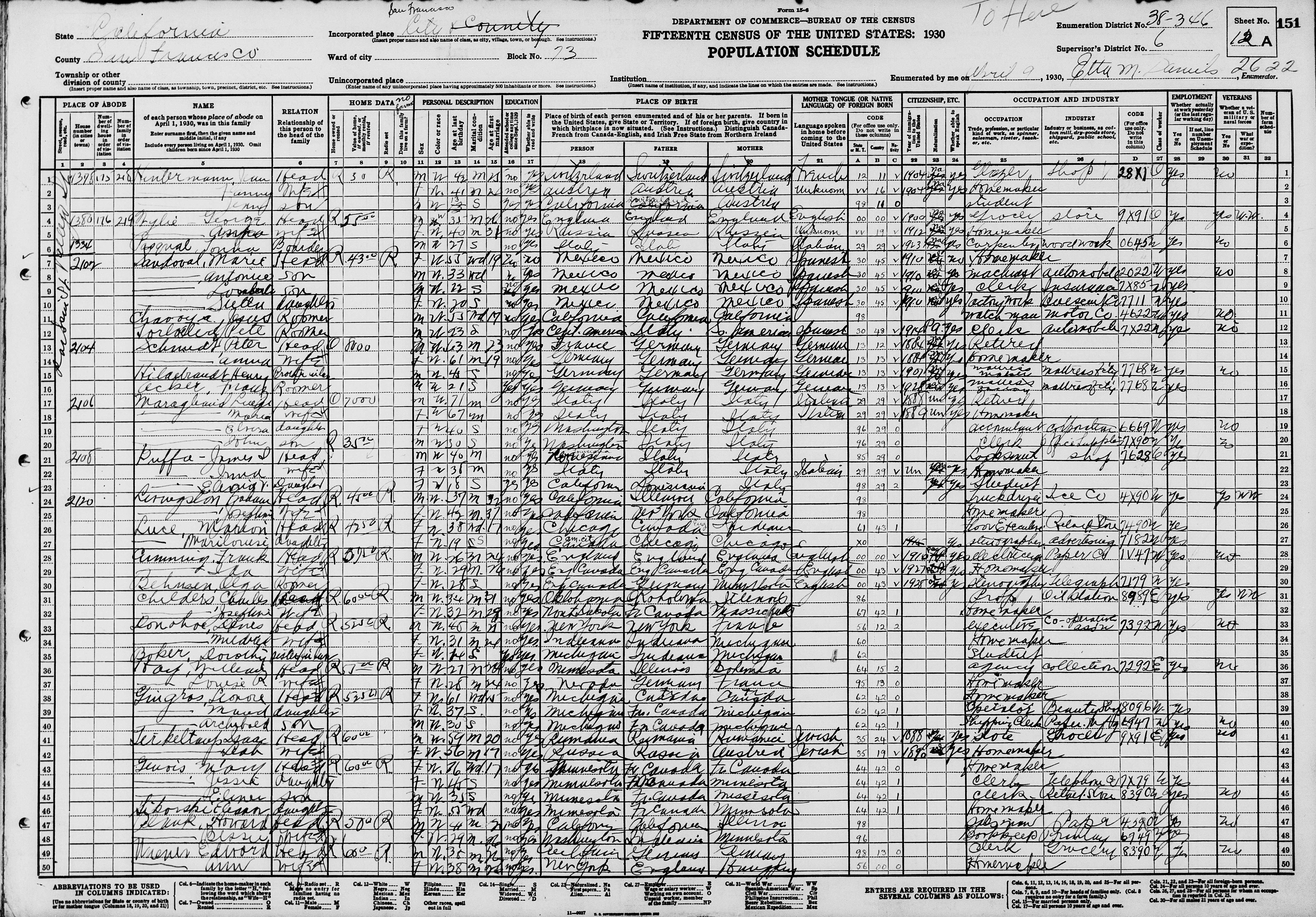 Sandoval Family 1930 Federal Census California, Lines 89-88
