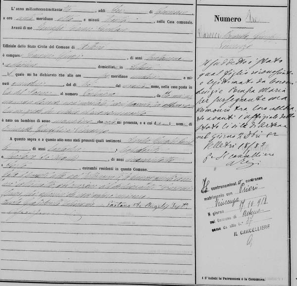 Vincenza Priosi were married on October 17, 1913 in Artena, Roma, Lazio, Italy. He died.