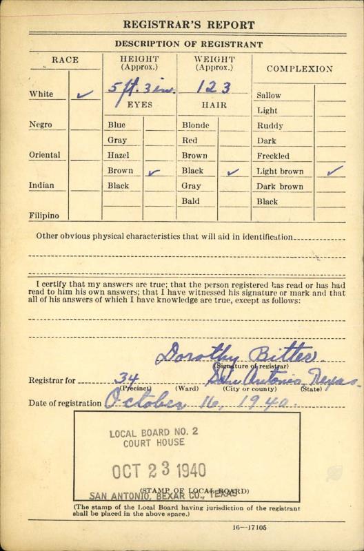 1941 World War II Registration Page 2