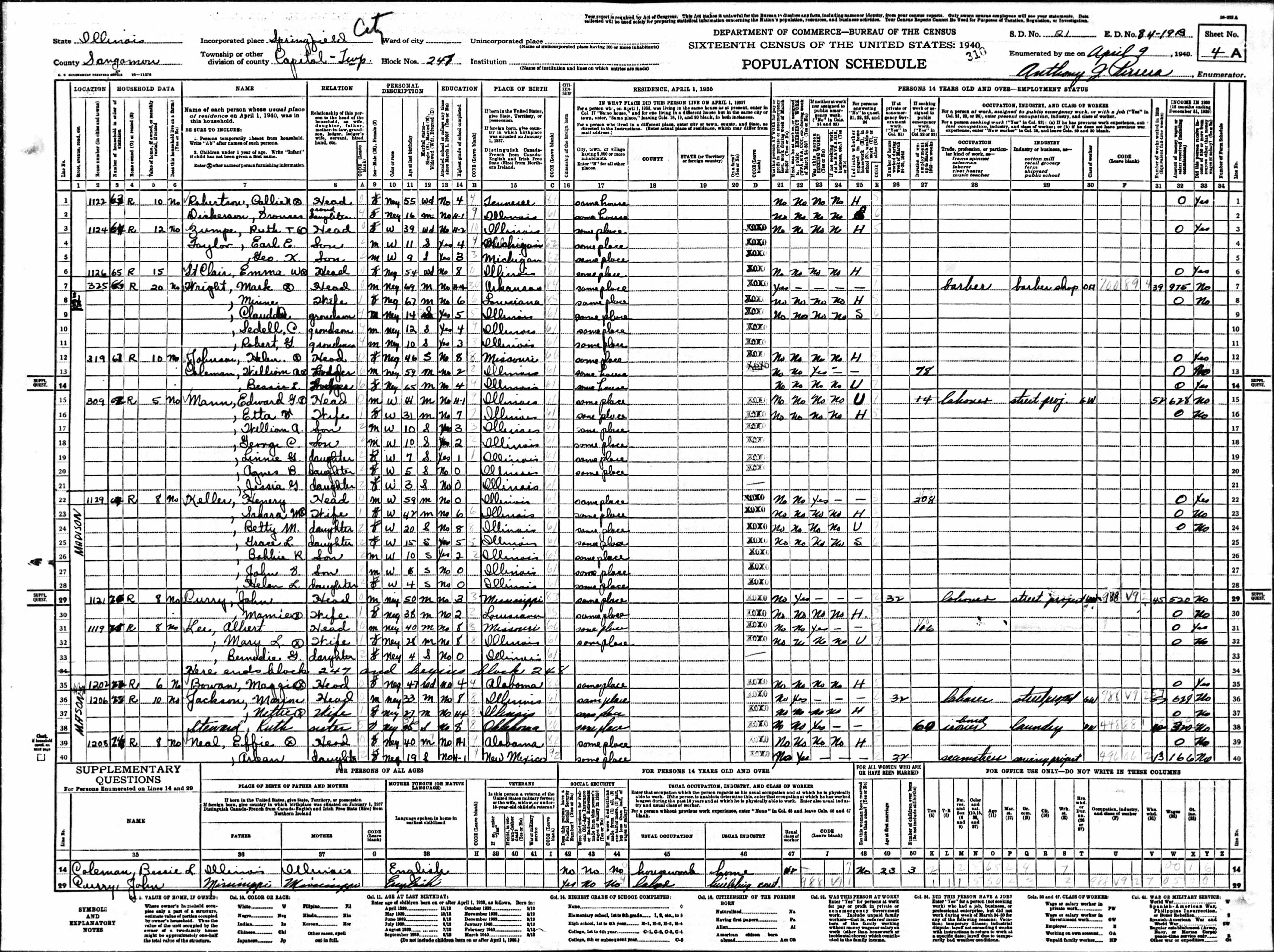 Perry Family 1940 Federal Census Illinois, Lines 73-79