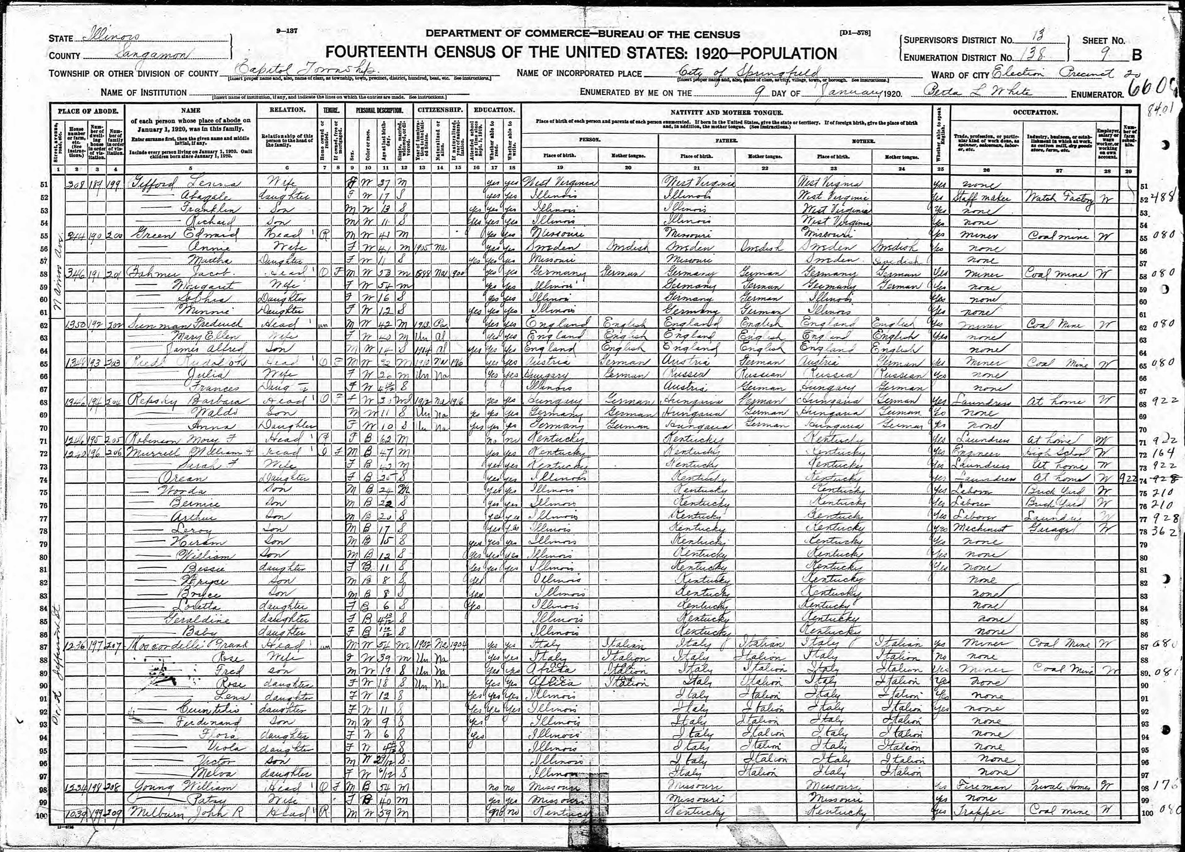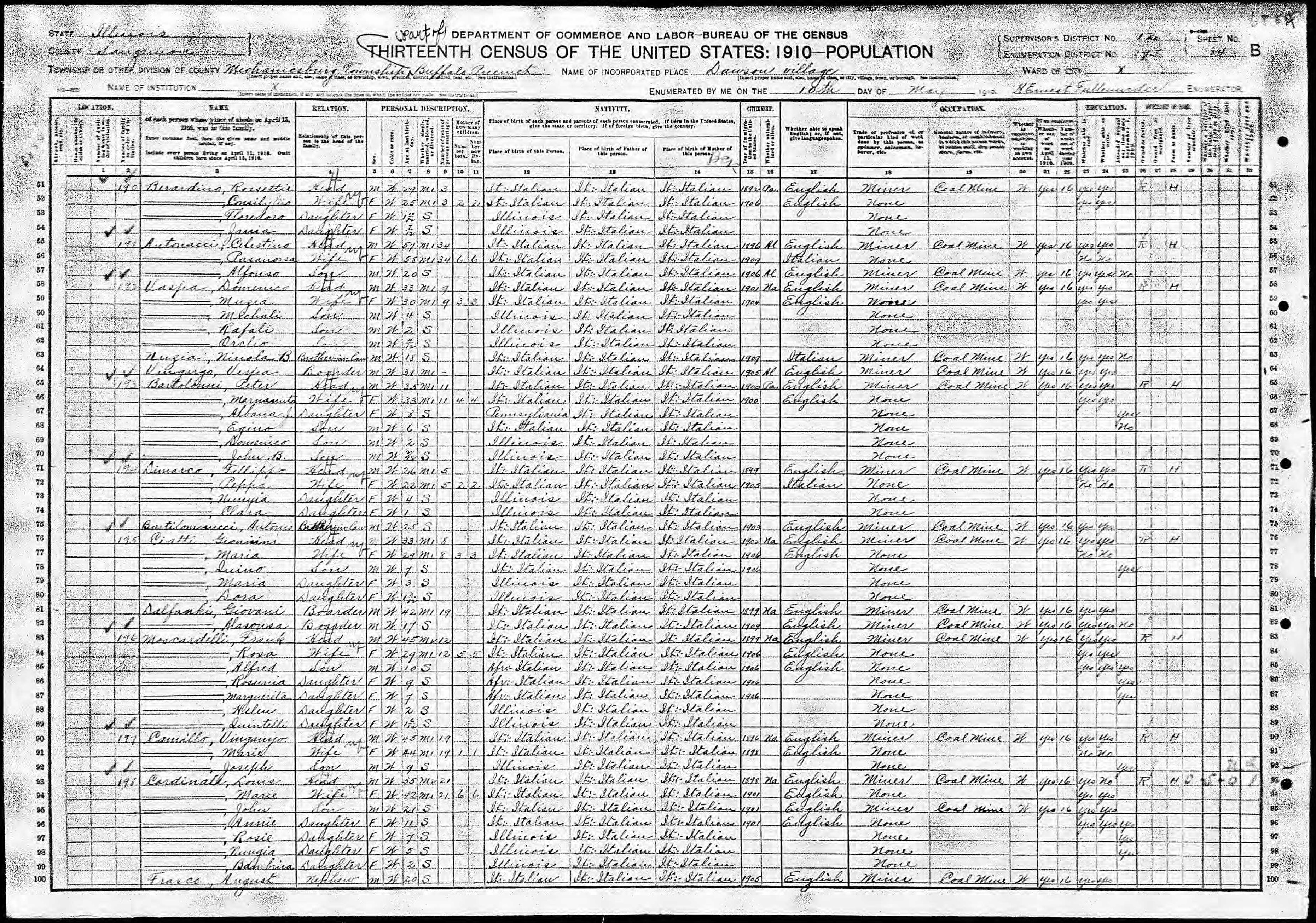 Langiano Family 1950 Federal Census Illinois, Lines 24-30