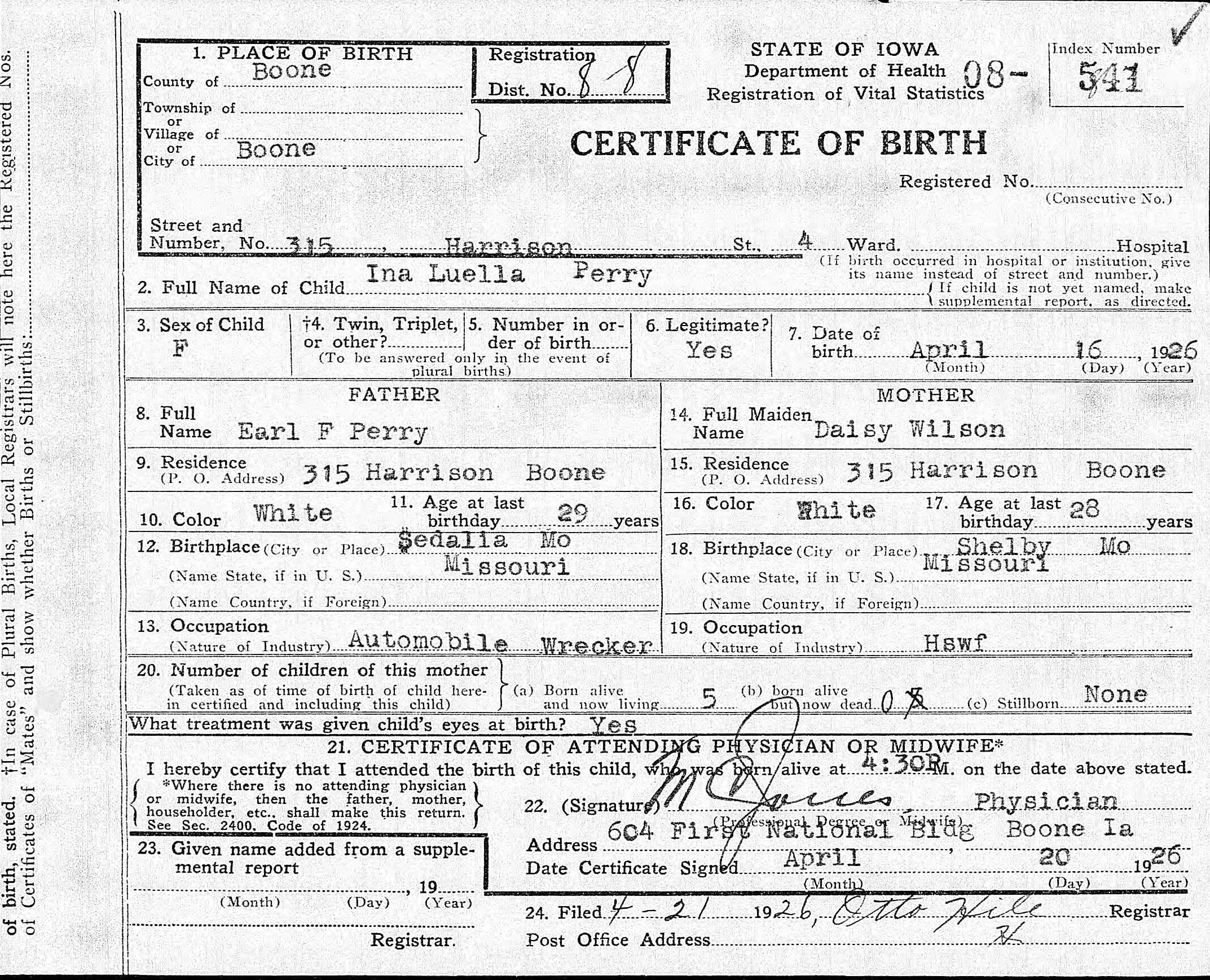 Doug Perry, Etta Baker, Ina Perry, Oma Perry, Earl Perry,and Step Sister Jessie