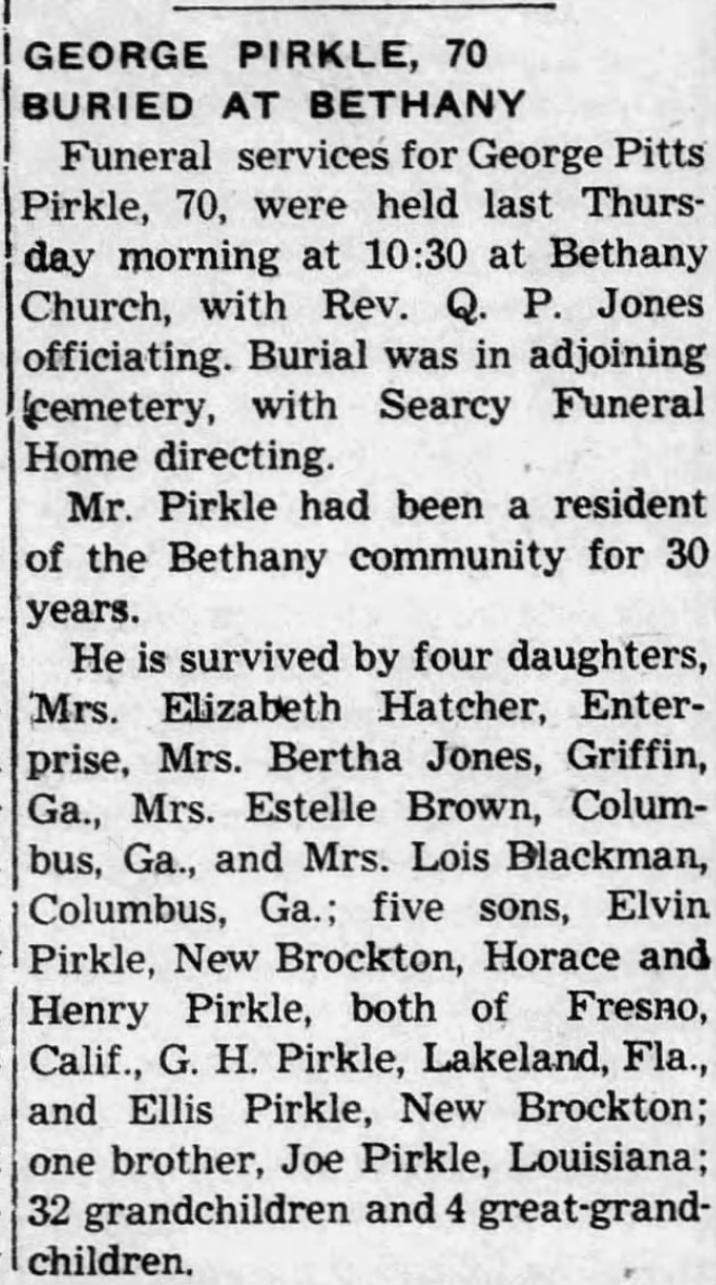 Horace Pirkle was born in 1912 in Alabama, USA. He died.