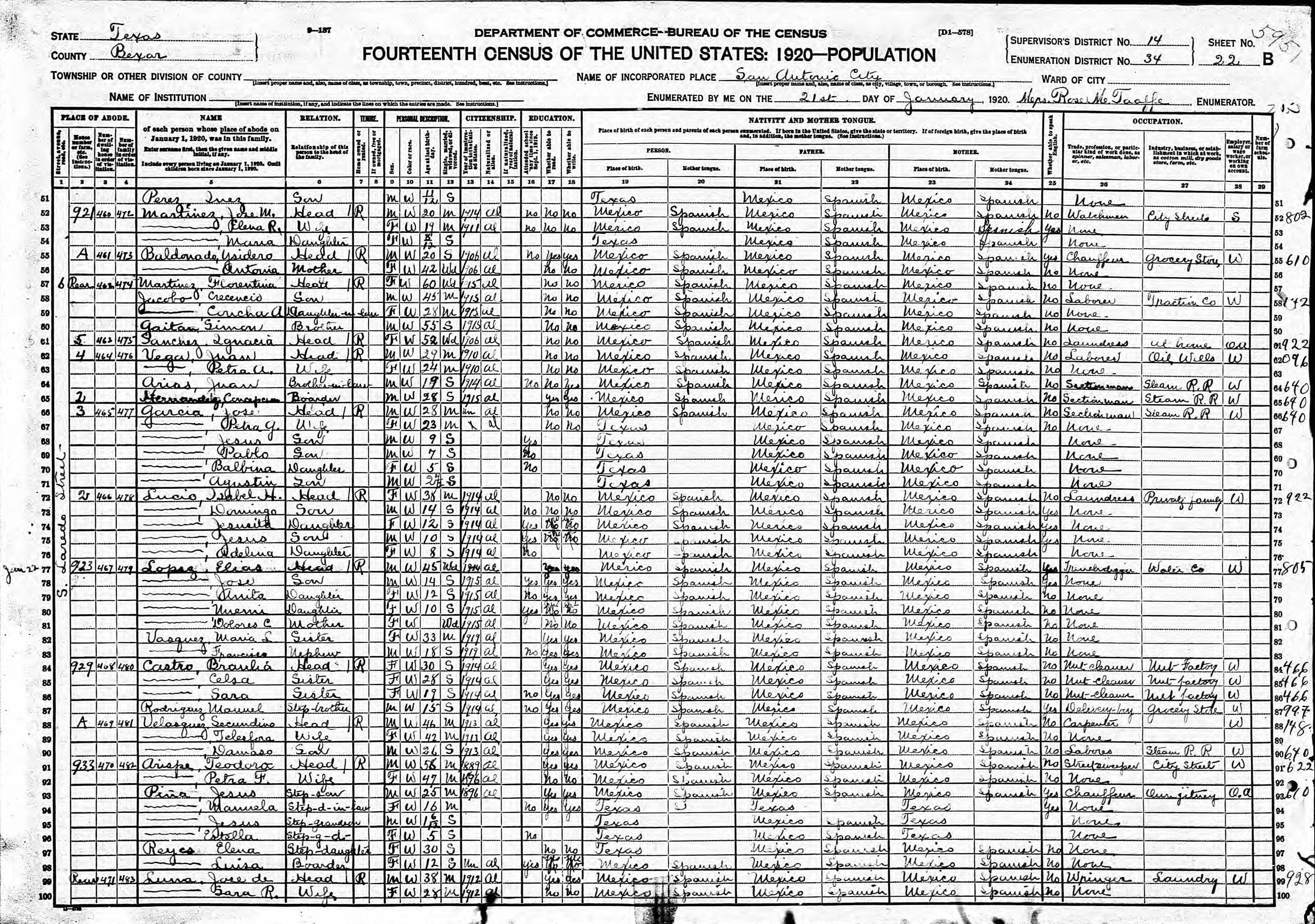 Lopez Family 1920 Federal Census Texas, Lines 77-83