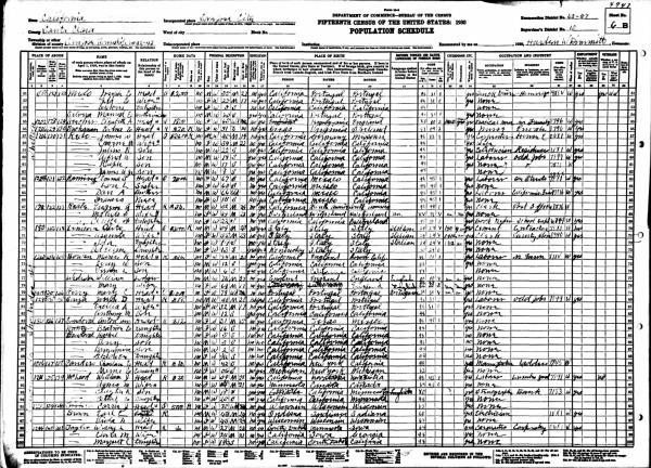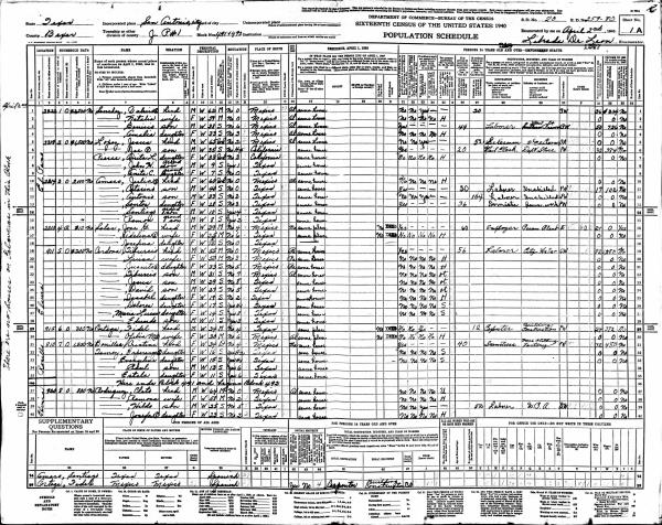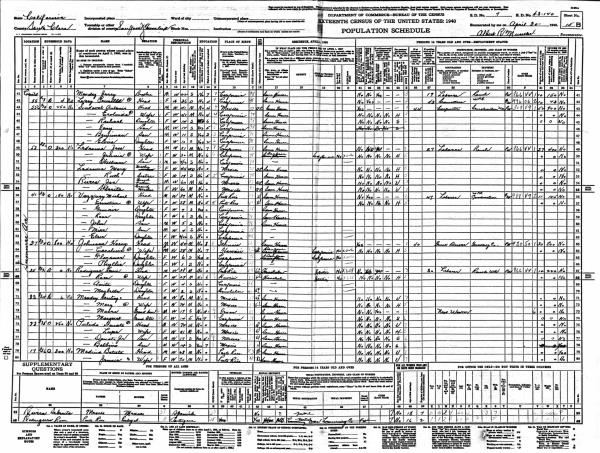 Sandoval Family 1940 Federal Census California, Lines 43-48