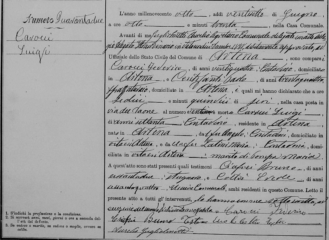 Luigi Carocci was born in 1838 in Artena, Roma, Lazio, Italy. He and