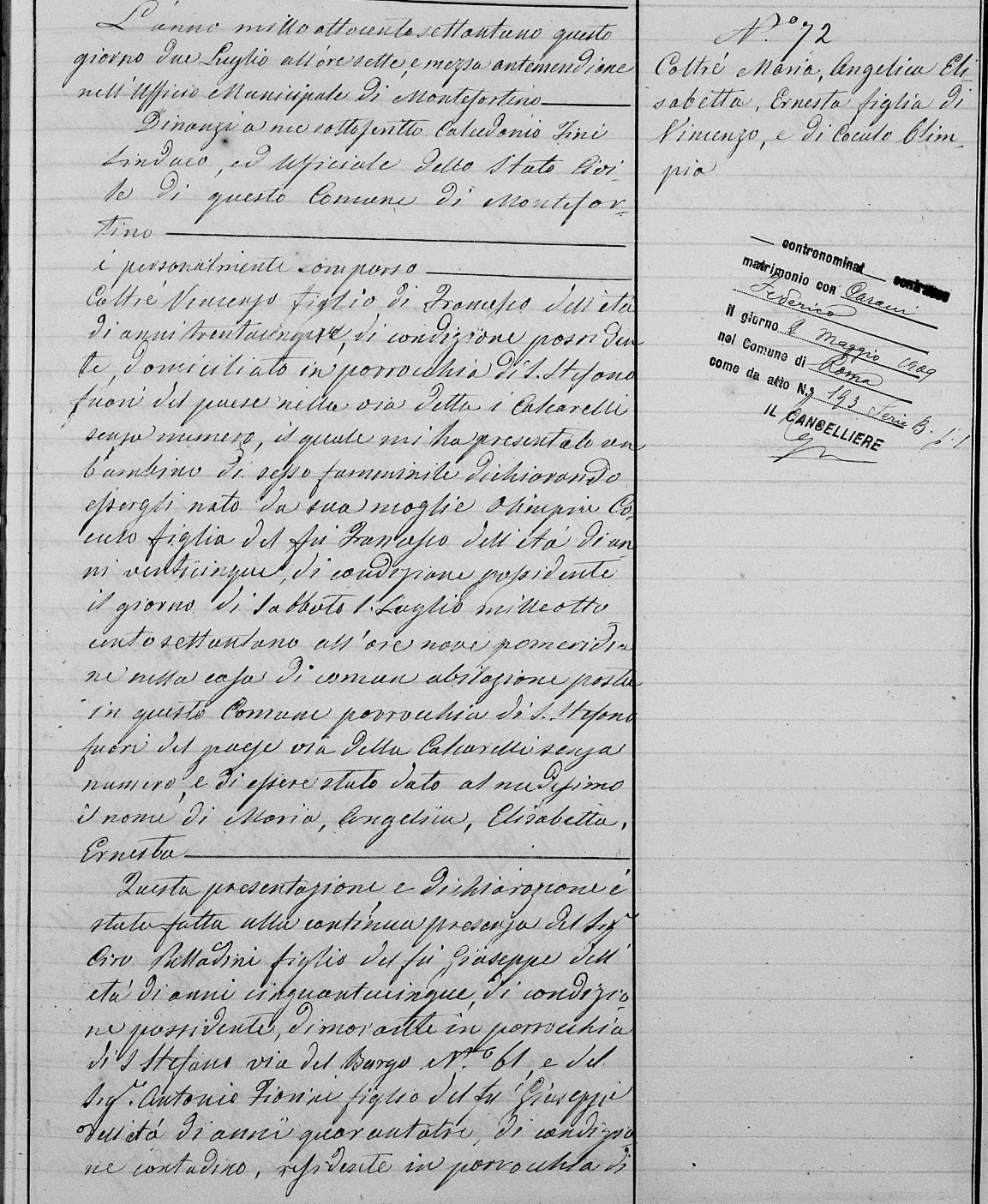 Maria Angelica Elizabetta Ernesta Coltre was born on July 2, 1871 in Artena, Roma, Lazio, Italy. She and